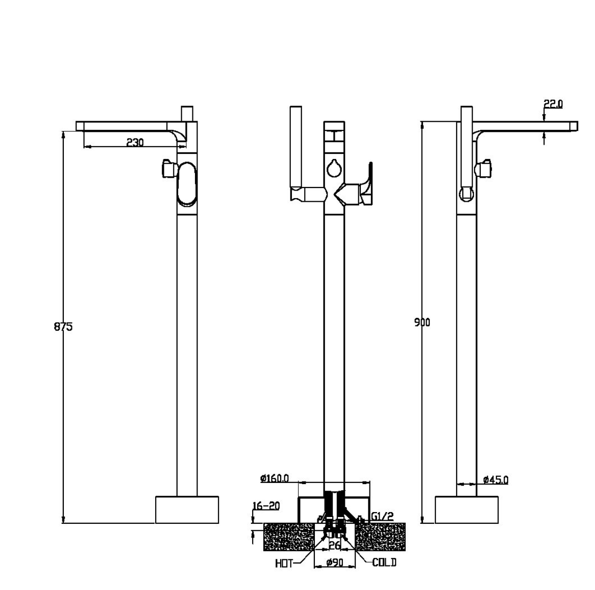 Смеситель для ванны Boheme Spectre 459-MW напольный.Характеристики: