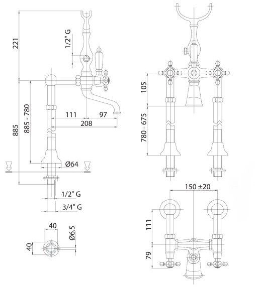 Напольный смеситель для ванны, бронза Cezares GOLF-VDP-02-Bi купить