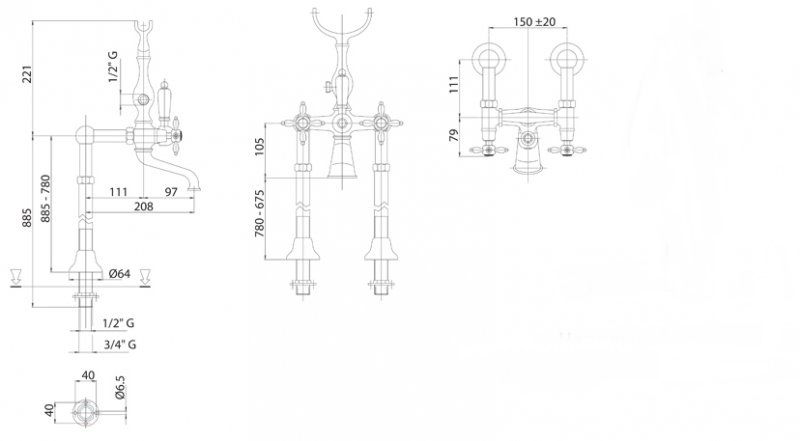 Напольный смеситель для ванны, хром Cezares NOSTALGIA-VDP-01-Bi купить