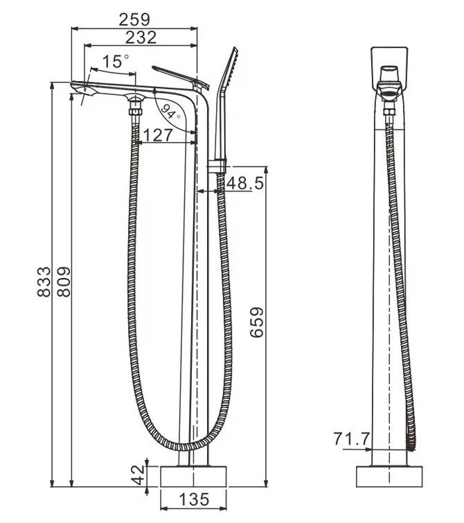 Напольный смеситель для ванны Rose R1322F белый/хром