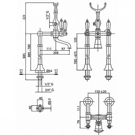 Оснащение: душевой шланг, душевая лейка, аэратор, дивертор, универсальный установочный комплект