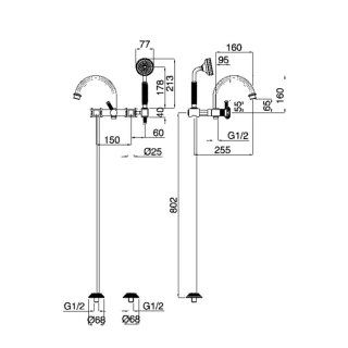 Напольный смеситель для ванны с ручным душем Cezares APHRODITE-VDP-02-Sw