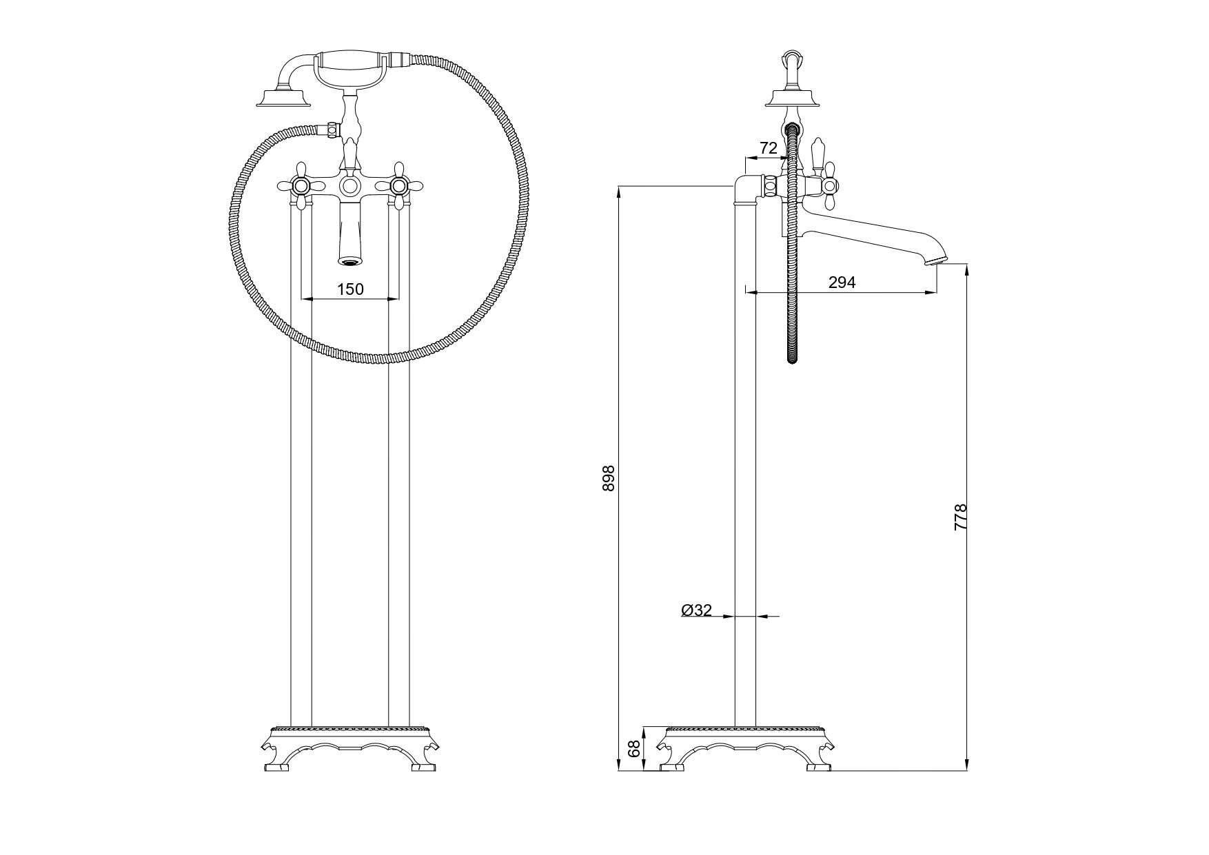 Смеситель для ванны напольного монтажа WONZON & WOGHAND RETRO, Хром (WW-88649020-CR)
