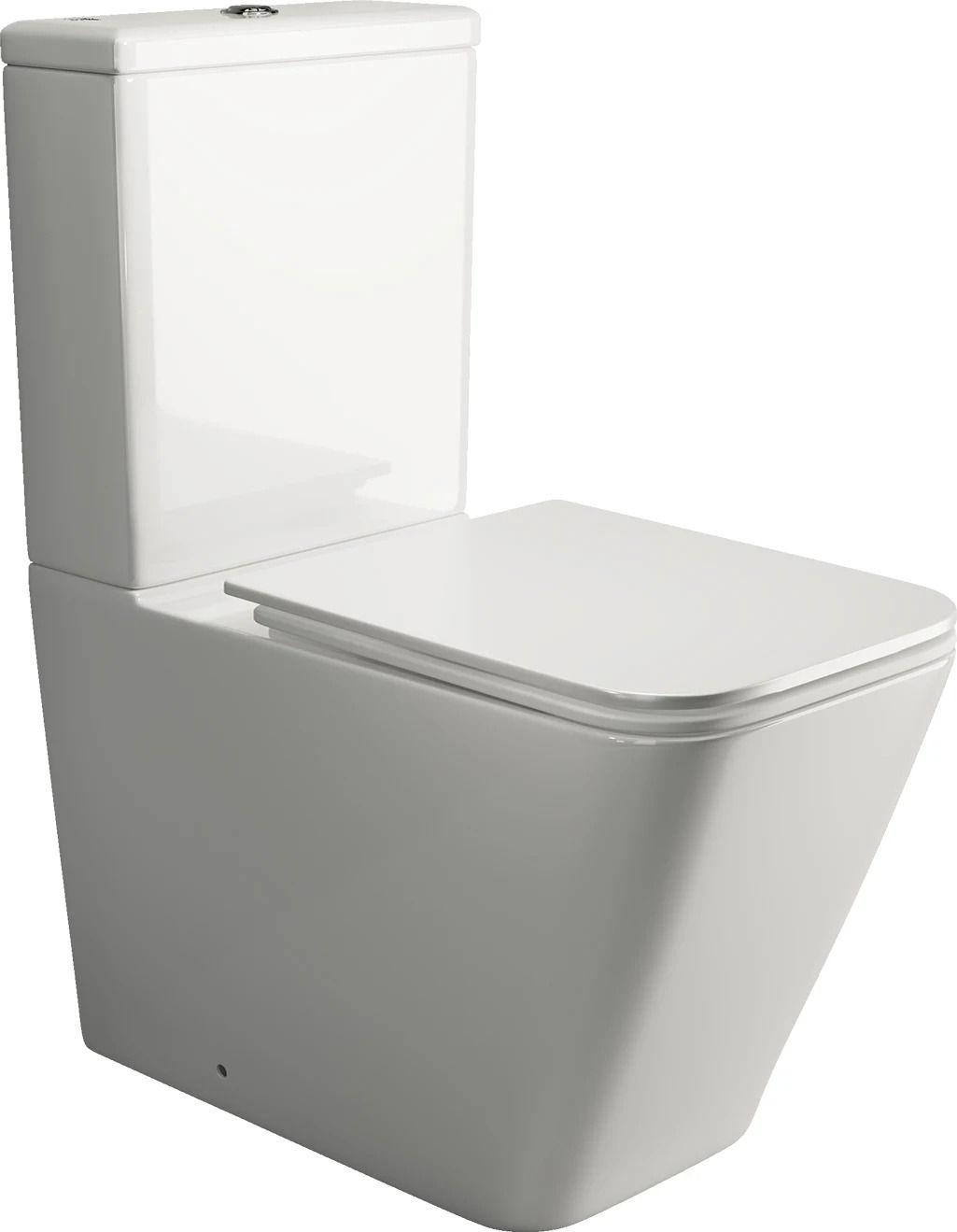 Напольный пристенный унитаз с бачком Cubic Rimless, двойной смыв 3/6, нижняя подводка глубокий смыв, горизонтальный (универсальный) выпуск, с крепежом, ультра тонким сидением с функцией плавного закрытия, дюропласт