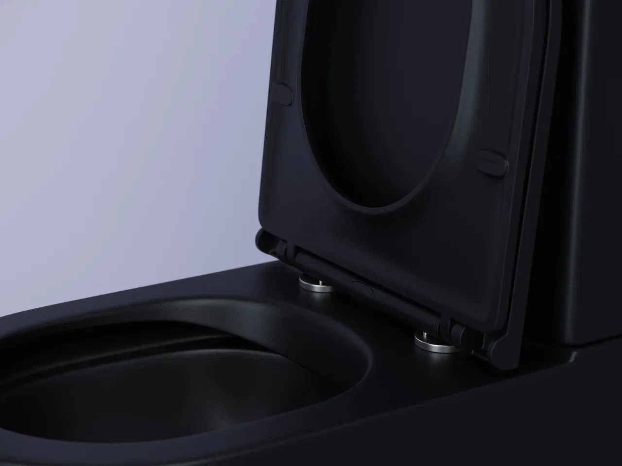 Напольный пристенный унитаз с бачком Metropol Rimless, двойной смыв 3/6 арматура, нижняя подводка глубокий смыв, горизонтальный (универсальный) выпуск, с крепежом, с ультра тонким сидением и крышкой с функцией плавного закрытия, дюропласт (цвет чёрный матовый)