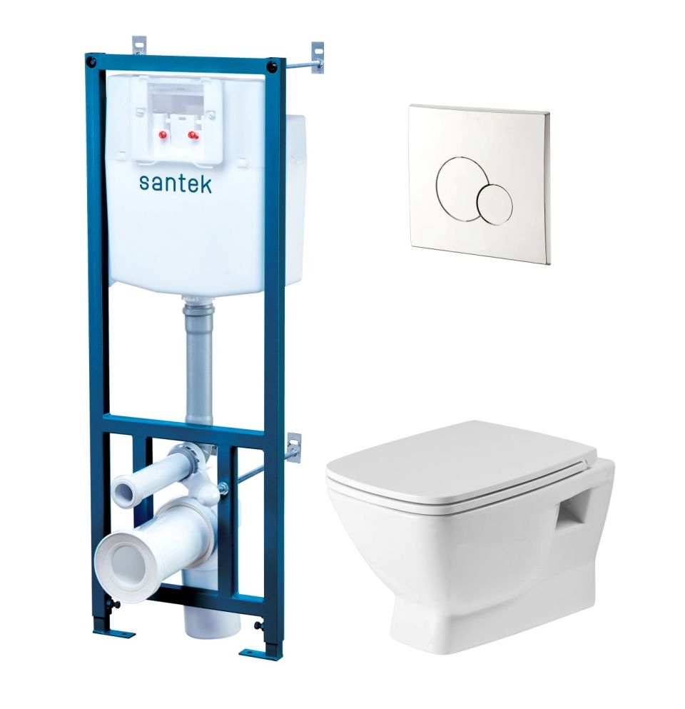 Нео rimless Пэк 1.WH50.1.572 подвесной унитаз + инсталляция + сиденье + панель хром Santek купить