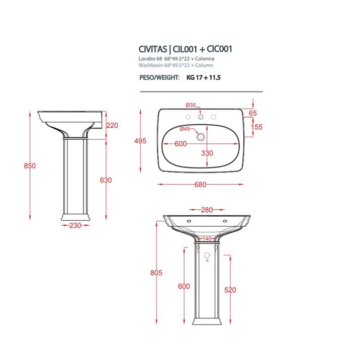 Пьедестал для раковины Artceram CIVITAS CIC001 01 00 bi*1 белыйArtceram CIVITAS Колонна для раковины 68 см. цвет: белый