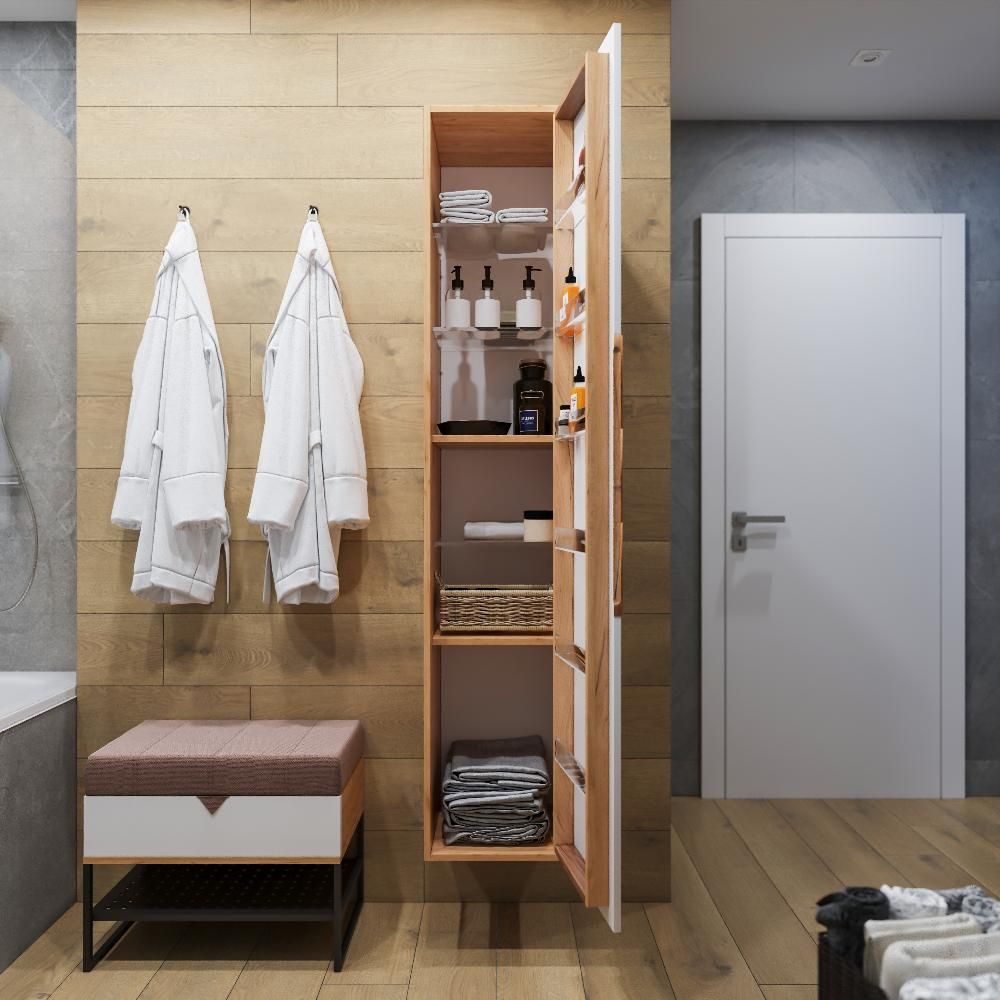 Будь то строгий минимализм или уютный скандинавский стиль, шкаф-пенал станет акцентом, который подчеркивает индивидуальность вашего пространства. Не упустите возможность преобразить свою ванную комнату, добавив в нее этот элегантный и практичный элемент.