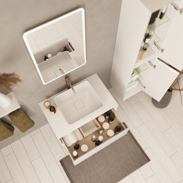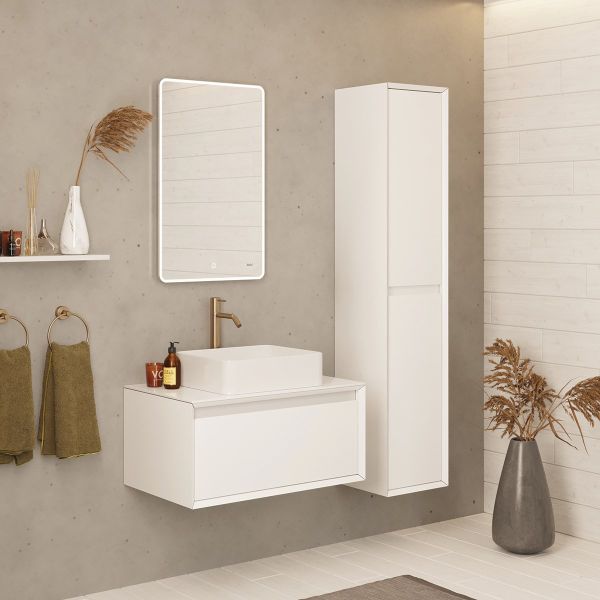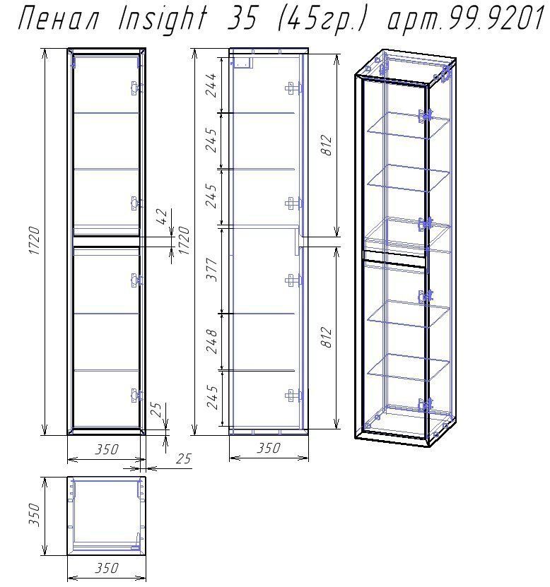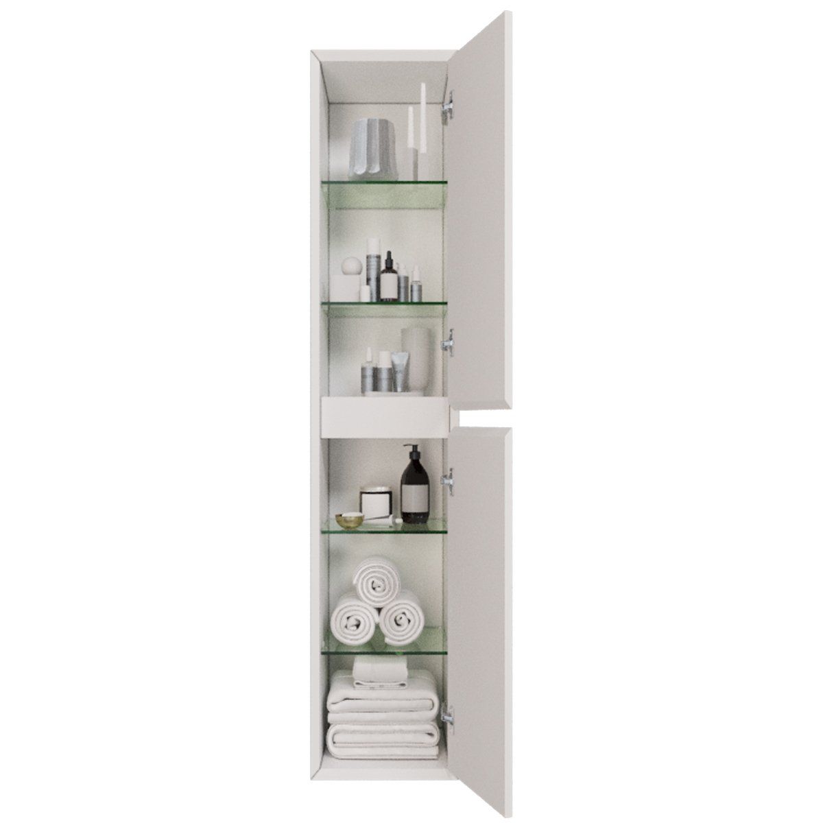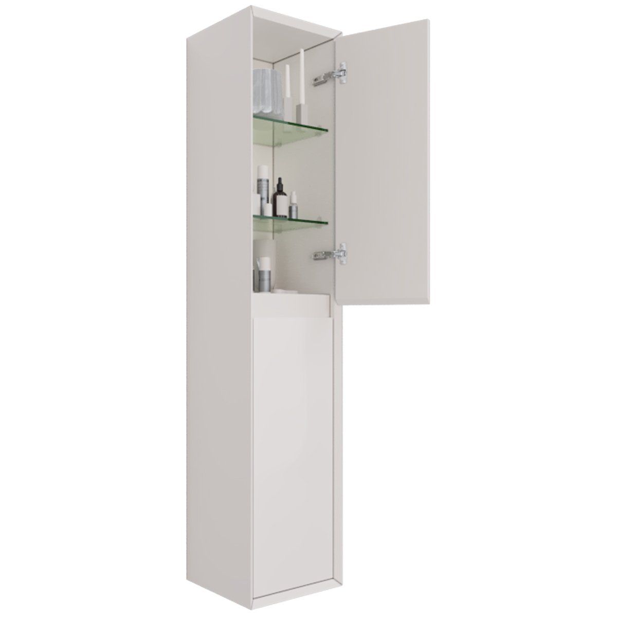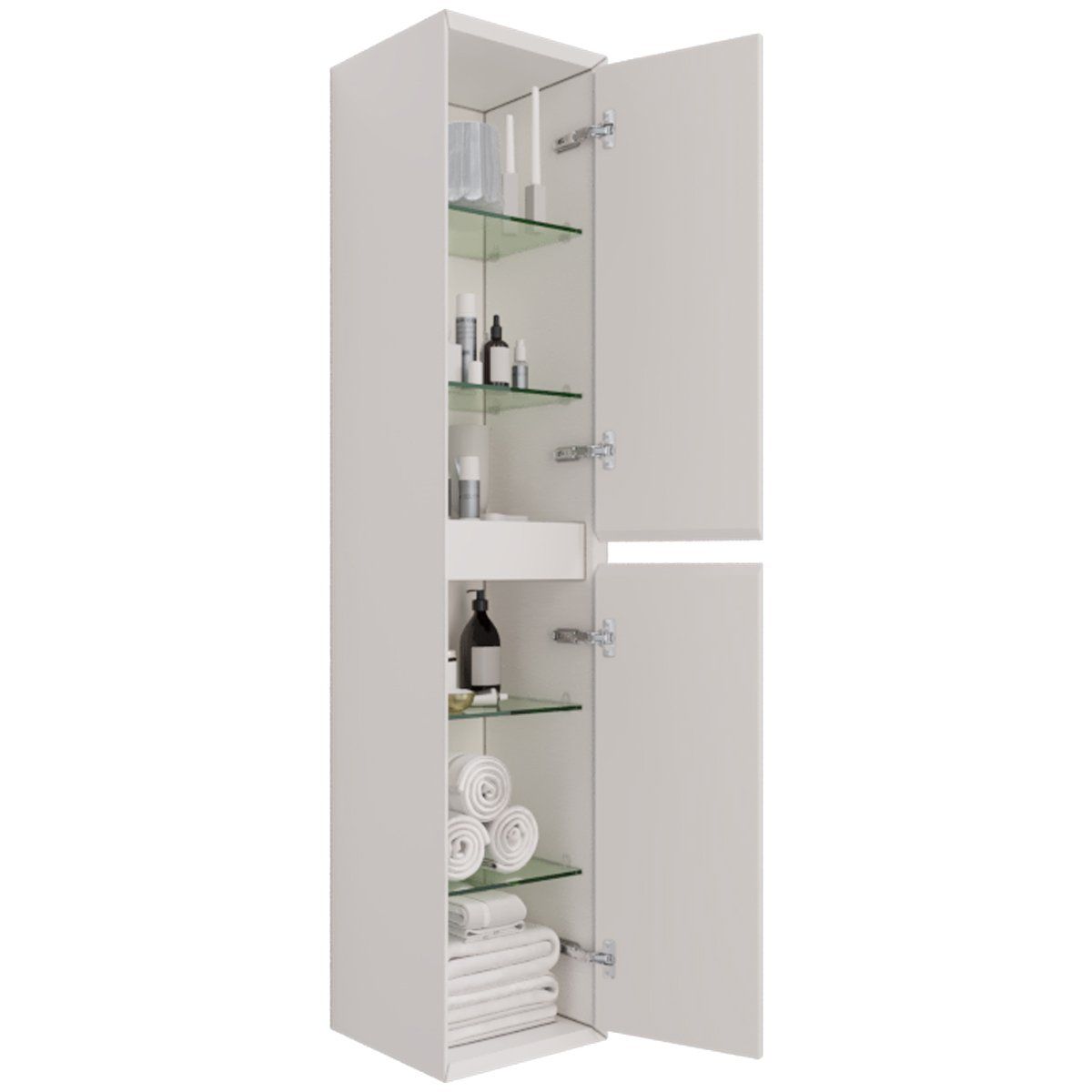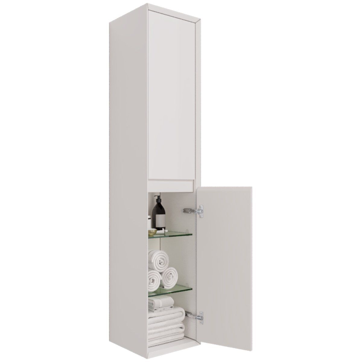 Пенал INSIGHT, 35 см, подвесной, универсальный, 2 дверцы, 4 стеклянные полки, белый глянец