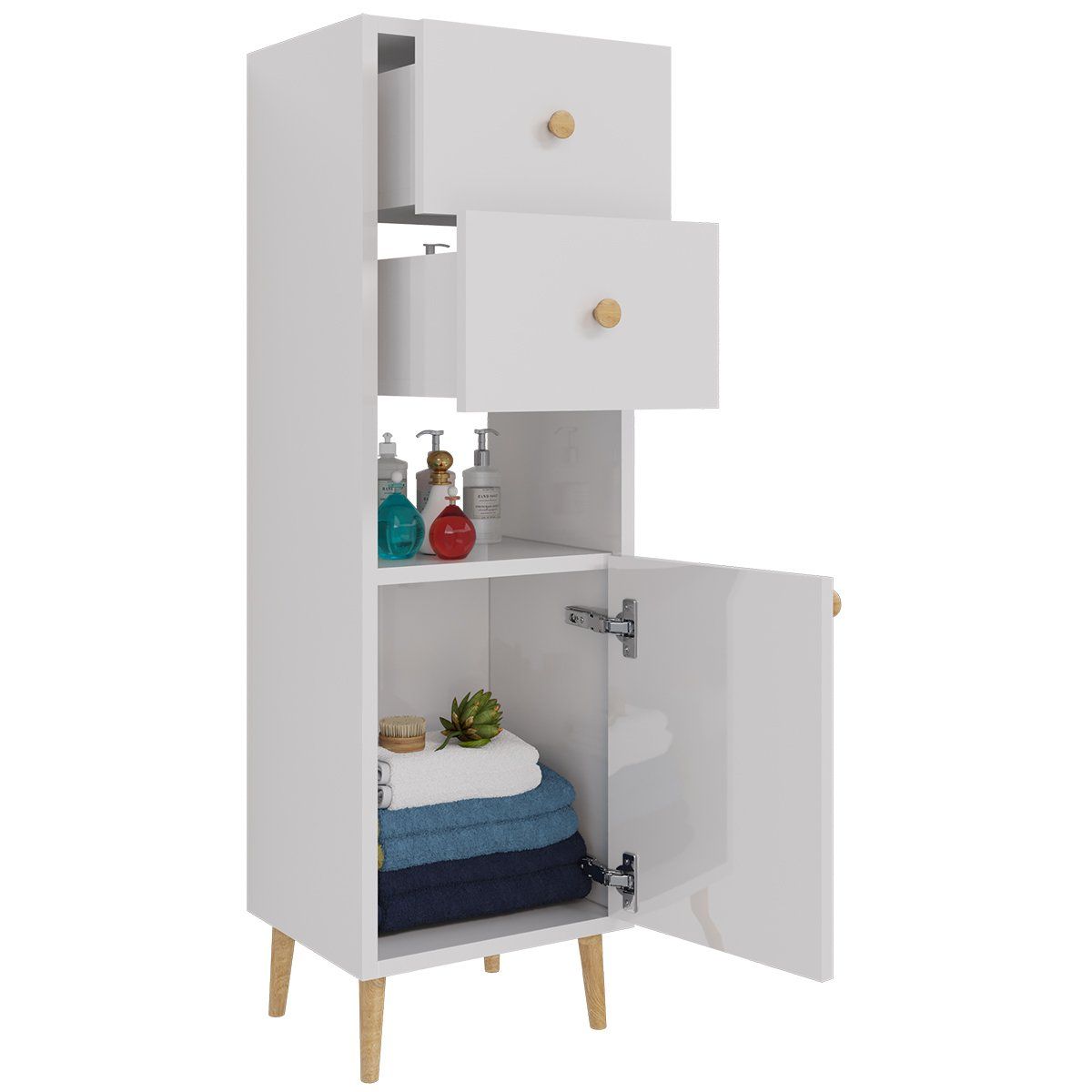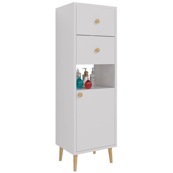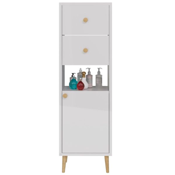 Шкаф LUNO, 35 см, напольный, правый, 1 дверца, 2 ящика, 1 открытая полка, белый глянец