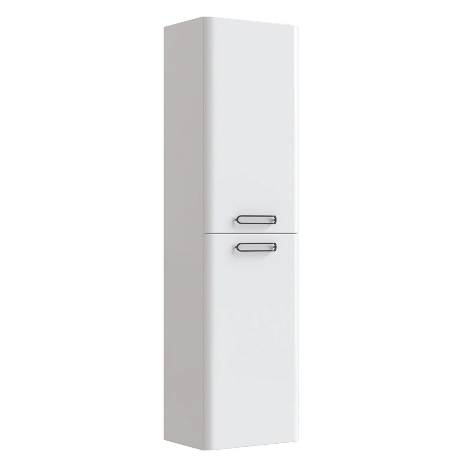 Пенал для ванной комнаты, подвесной. Размеры: 300х400х1500 мм (ДхШхВ). Универсальная ориентация. Фасады МДФ 19 мм в эмали (цвет белый глянец). Корпус влагостойкий ЛДСП 16 мм в эмали. Две дверцы. Ручки - цвет состаренное олово. Стеклянные полки 4 мм с фиксаторами. Петли с доводчиками. Упаковка: картон, пленка, пенопластовые уголки.