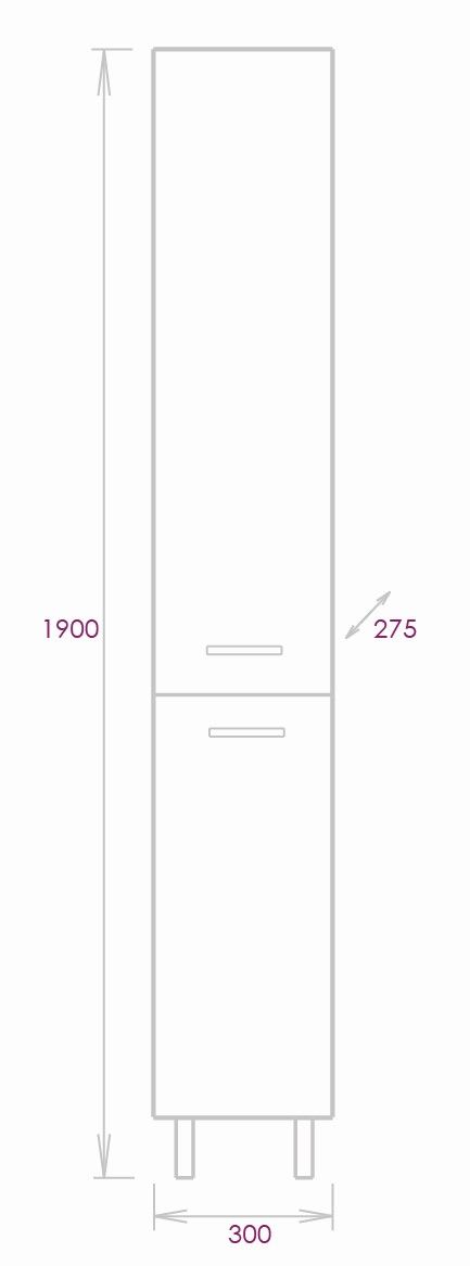 Белый глянцевый цвет, строгие формы без декора и дизайнерские хромированные ручки на двух распашных дверях с механизмом плавного закрывания скрывают просторное внутреннее пространство для размещения необходимых бытовых принадлежностей.