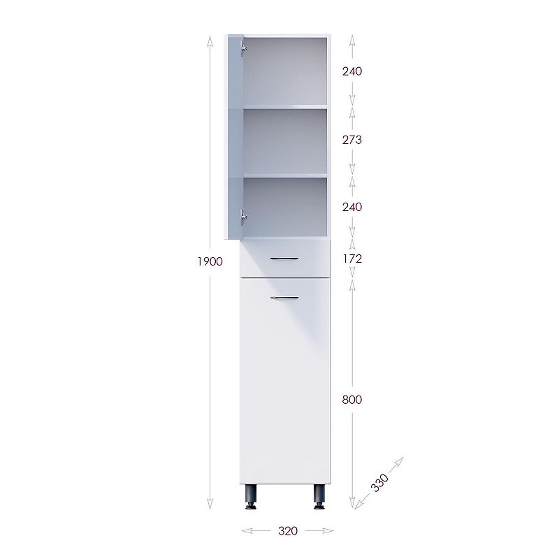 Напольный пенал для ванной комнаты с корзиной для белья Onika МОДЕРН 32, благодаря простому минималистичному дизайну, белому глянцевому фасаду, подойдет под любой интерьер ванной комнаты.