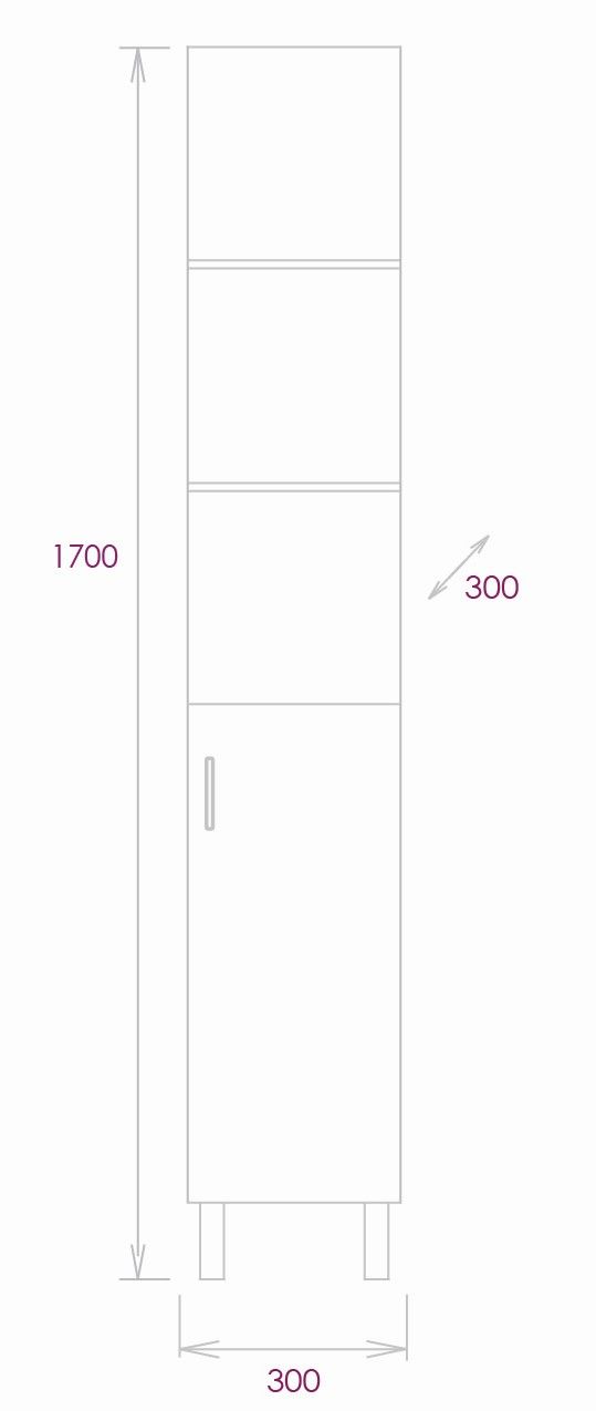 Размер пенала с ножками: 30х30х170 см.