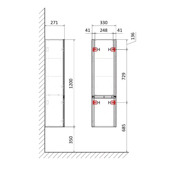 Пенал подвесной AQUAme S4 AQM9004WH 33 см белый купить