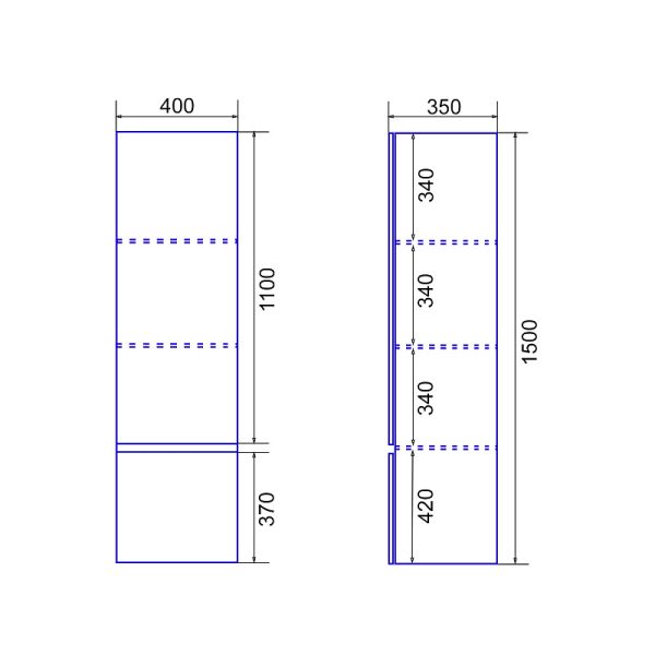 Два распашных фасада. В первом распашном фасаде две стеклянные