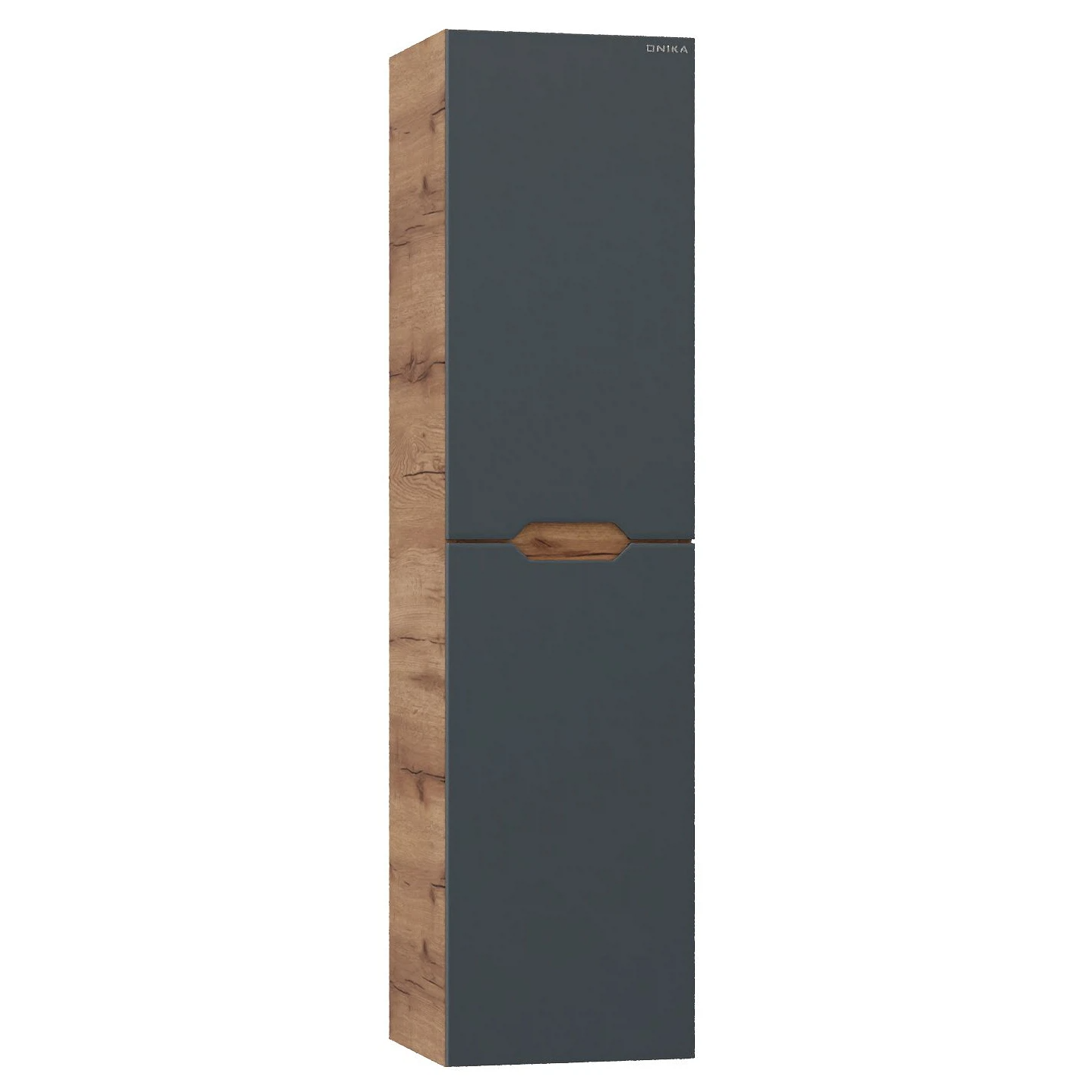 Подвесной пенал для ванной комнаты Onika Айленд 30 сочетает в себе стильный минималистичный дизайн, высочайшее качество исполнения и актуальные тренды цвета: графит и дуб крафт золотой.