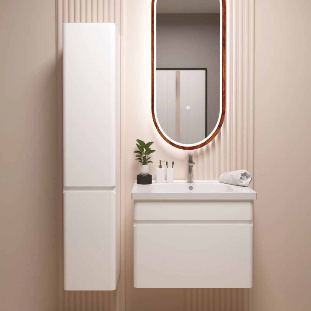 Пенал Prestige (Арт. PRS000P-L / PRS000P-R) Вертикальный модуль премиум-класса для систем хранения ----------------------Ключевые характеристики Параметр Описание Габариты (Ш?Г?В): 310 ? 332 ? 1600 мм (компактная ширина, высота 1.6 м) Тип установки: Напольный (стабильная вертикальная конструкция) Материалы: Влагостойкий МДФ с полуматовая эмалью (корпус и фасад) Отделка: • Поверхность: Полуматовая• Цвет: Белый (классический) Нагрузка: Усиленная конструкция (толщина МДФ до 20 мм) Варианты: Левый (L) / Правый (R) для симметричной компоновки ----------------------Особенности конструкции ? Эффективное хранение: - Оптимальная глубина 332 мм для банных принадлежностей. - Высота 1600 мм позволяет хранить высокие предметы (зонты, швабры, сушилки).? Защита от влаги: - Влагостойкое эмалевое покрытие МДФ.? Интеграция с серией: - Гармонично сочетается с тумбами Prestige: - Prestige 60 (арт. PRS600T-CR, 564?500?433 мм) - Prestige 80 (арт. PRS800T-CR, 764?500?433 мм) ----------------------Технологические преимущества - Прочность: - Усиленный корпус из МДФ толщиной до 20 мм. - Фурнитура: - Регулируемые системы европейского производства. - Удобство обслуживания: - Полуматовая поверхность скрывает следы брызг и отпечатки. ----------------------Примеры компоновки Идеально для обрамления зеркал или ниш. ----------------------Сравнение с тумбами серии Элемент Пенал Prestige Тумба Prestige 80 Функция Вертикальное хранение Раковина + ящик Ширина 310 мм 764 мм Высота 1600 мм 433 мм Особенность Боковой монтаж (L/R) Интегрированная раковина 80 см ----------------------Рекомендации по применению • Для малогабаритных ванн: Компактная ширина 310 мм экономит пространство.• Для систем хранения: Комбинация с тумбами Prestige создает единый гармоничный ансамбль.• Для визуального расширения: Белый полуматовый цвет зрительно увеличивает помещение. ----------------------Пенал Prestige — элегантное решение для организации вертикального пространства, сочетающее сертифицированное европейское качество материалов и лаконичный дизайн. Незаменим для создания упорядоченного интерьера ванной комнаты премиум-класса.