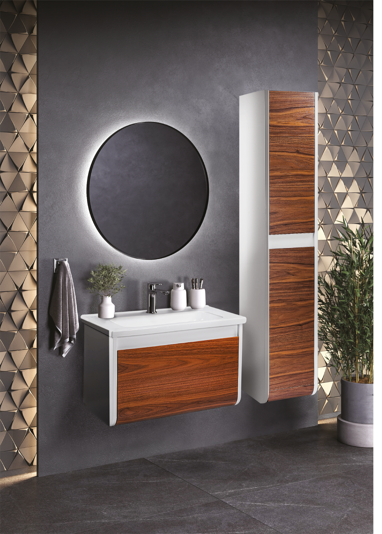 Серия VISION: Модульная система с натуральным шпоном Базовые элементы системы - Напольные пеналы (для бокового монтажа) - Арт. VSN000P-L (Левый): 310 ? 1600 ? 346 мм - Арт. VSN000P-R (Правый): 310 ? 1600 ? 346 мм ----------------------Ключевые характеристики Параметр Значение Конструкция Модульная (комбинируется тумба + пеналы) Корпус Влагостойкий МДФ с эмалевым покрытием Фасад Натуральный шпон лиственных пород Тип установки Подвесной (тумбы), напольный (пеналы) Система хранения 1 выдвижной ящик (в тумбе) + пеналы с полками Толщина МДФ До 20 мм (усиленная прочность) Нагрузка ящика До 40 кг (специальная фурнитура) Поверхность Полуматовая с текстурой древесины Цвета • Фасад: Дуб (натуральный шпон)• Корпус: Белый Фурнитура Полностью выдвижные ящики, регулируемые системы ----------------------Преимущества серии - Высокие пеналы (160 см) для хранения вертикальных предметов.? Гигиеничность: Подвесной монтаж тумб облегчает уборку.