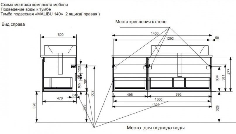 Подвесная тумба Эстет Malibu ФР-00007123 П 140см два ящика со вставкой массив белый купить