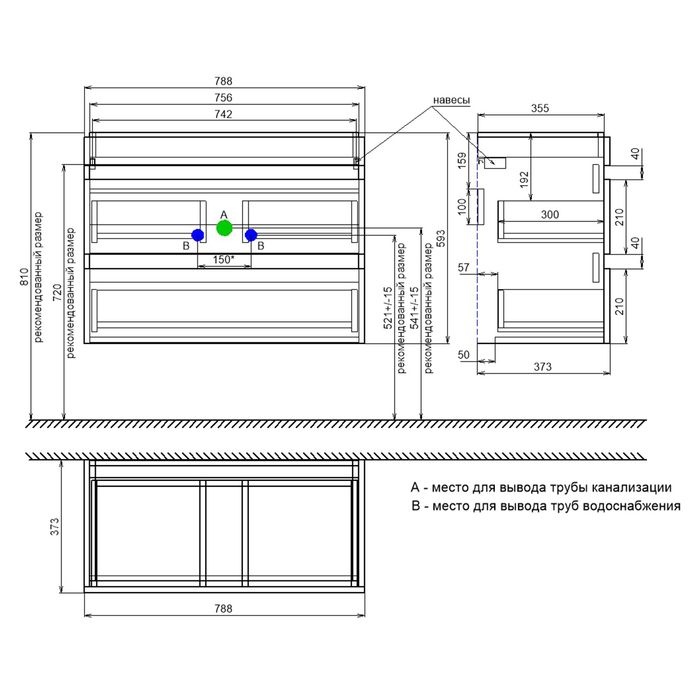 Два вместительных выдвижных ящика с механизмом плавного доведения закрываются плавно и бесшумно. Интегрированные ручки. Фурнитура рассчитана на 30 000 открываний, что составляет более 10 лет исправной работы.
