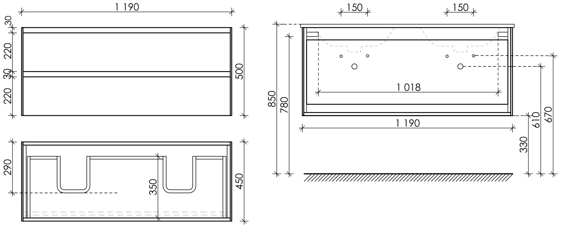 Подвесная тумба под двойную раковину Sancos Cento CN120-2KE 120см карпатская ель