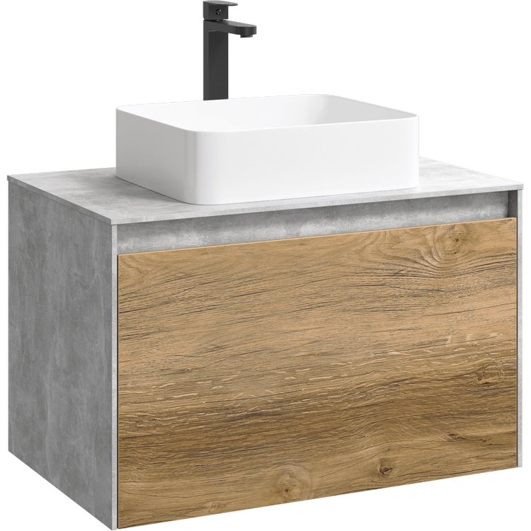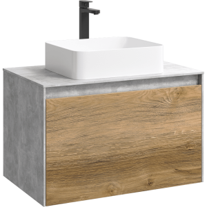 Подвесная тумба под раковину Aqwella Mobi MOB0108BS+MOB0708DB 80 смПодвесная тумба 80 см с двумя ящиками: основной и внутренний, скрытый за фасадом. Цвет бетон светлый/дуб балтийский; с умывальником