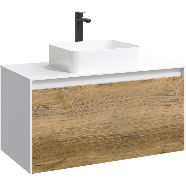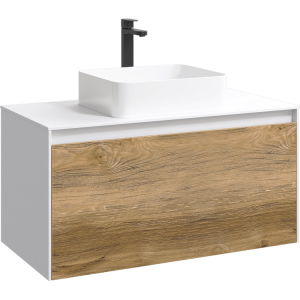 Подвесная тумба под раковину Aqwella Mobi MOB0110W+MOB0710DB 100 смПодвесная тумба 100 см с двумя ящиками: основной и внутренний, скрытый за фасадом. Цвет белый/дуб балтийский; с умывальником