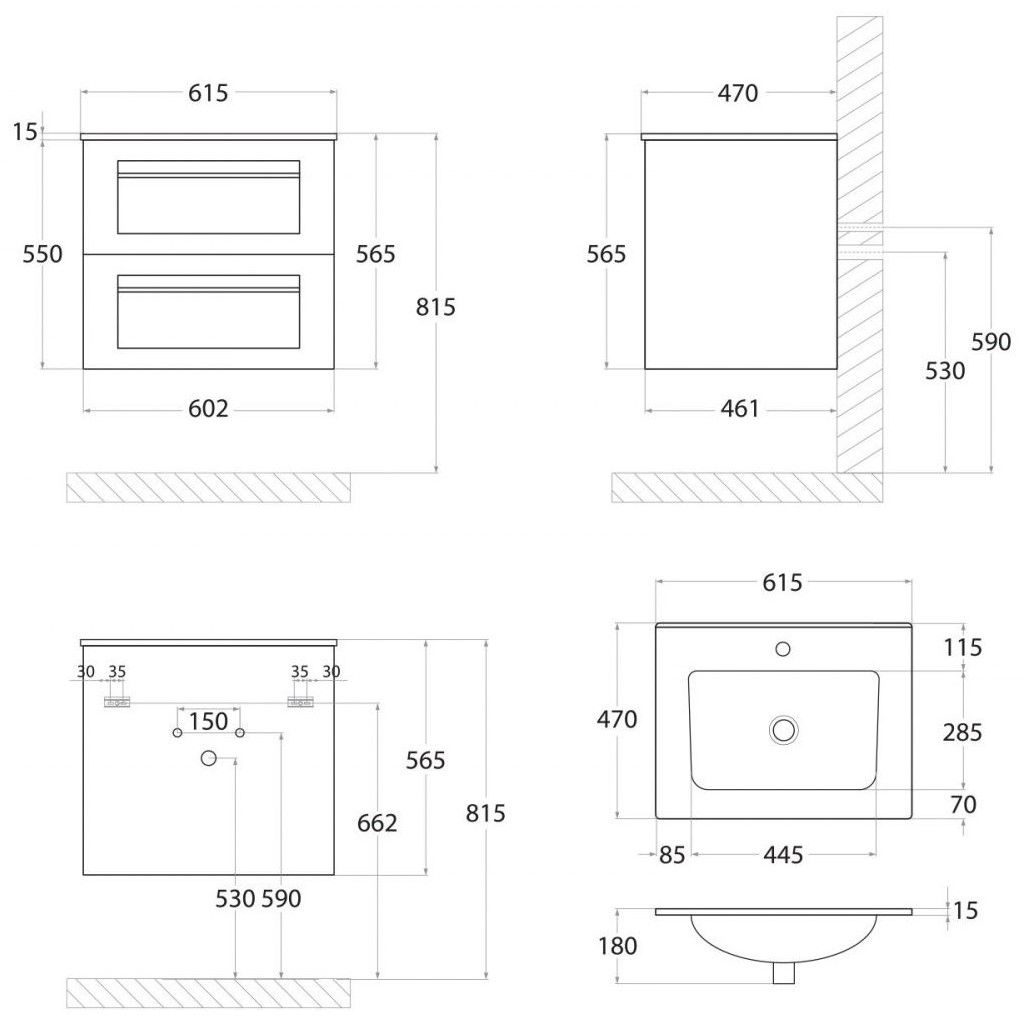 Подвесная тумба под раковину Art&Max Platino 60см белый глянцевый AM-Platino-600-2C-SO-BL-Cer купить