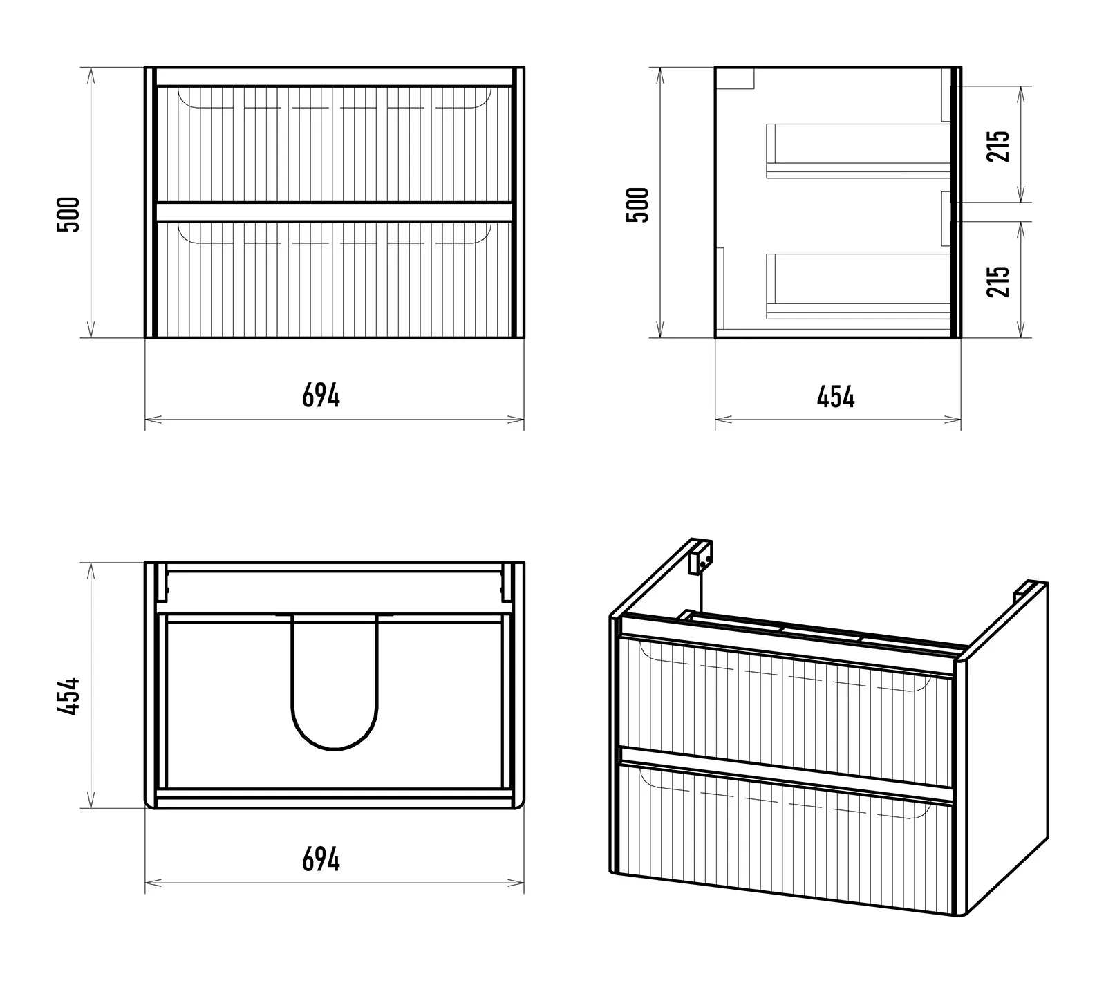 В комплекте с тумбой идёт раковина ONDA 70 см