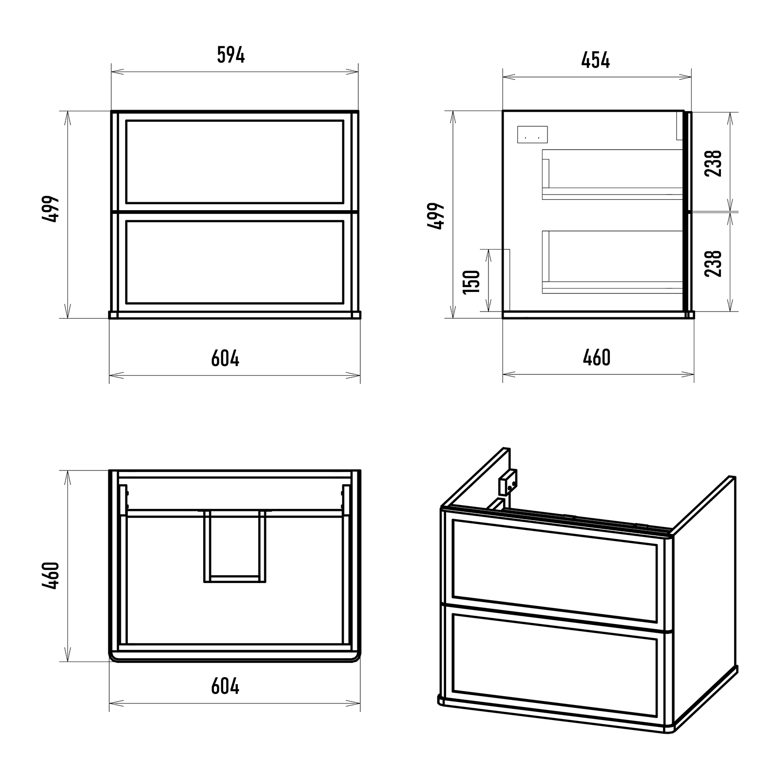 В комплекте с тумбой идёт раковина ONDA 60 см