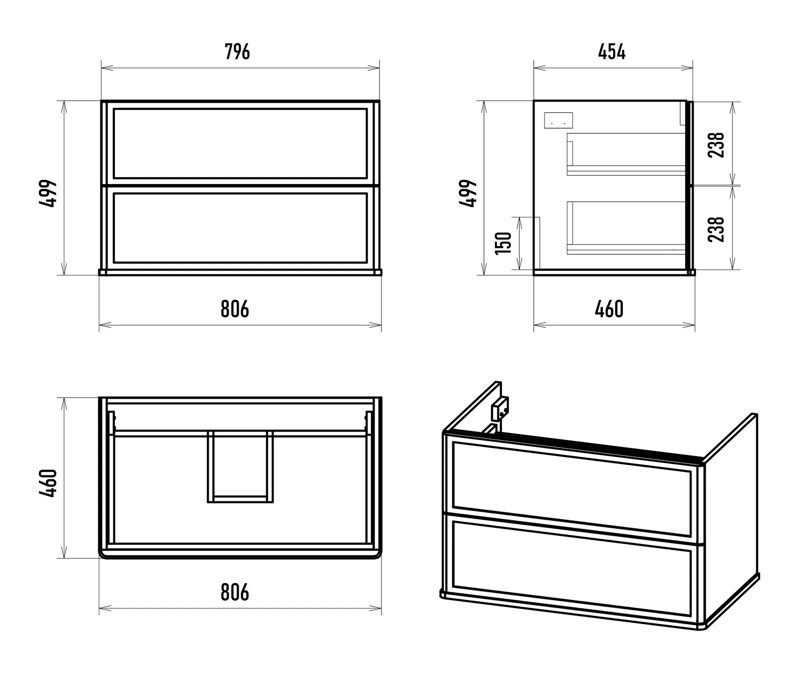 В комплекте с тумбой идёт раковина ONDA 80 см