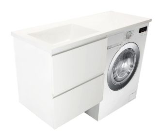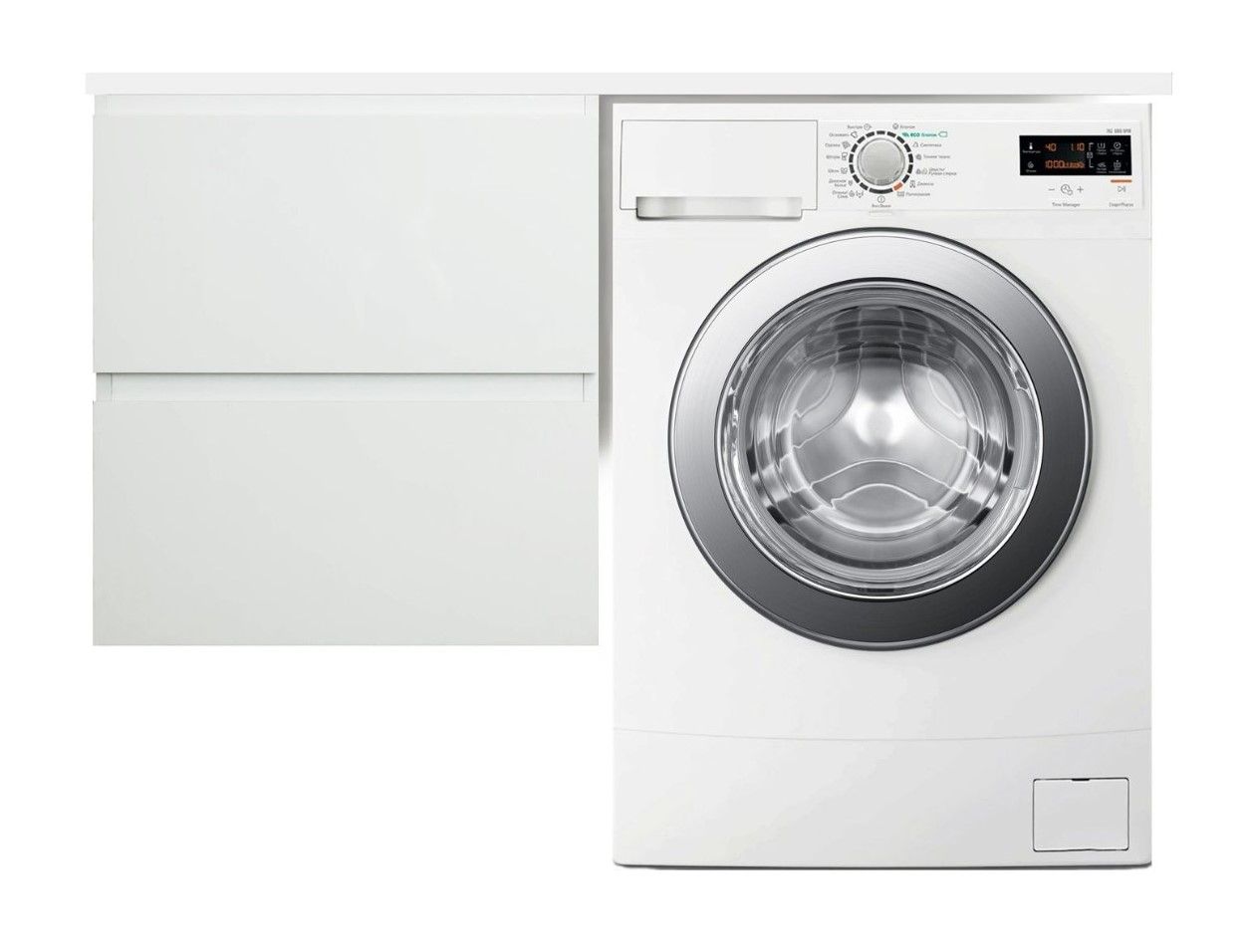 Коллекция мебели для ванной комнаты Dallas Luxe покоряет своей удивительной простой и функциональностью. Современная тумба укомплектована раковиной из литьевого мрамора с удобной чашей. Стиральная машина устанавливается под столешницей, за счет чего экономит место в ванной комнате. В тумбе имеются два ящика. Нижний ящик тумбы – широкий и вместительный – предназначен для крупных предметов, а в верхнем имеется специальная организация пространства, позволяющая хранить мелкие вещи. Подвесная система монтажа позволяет более эффективно использовать пространство, не мешает уборке в ванной комнате.