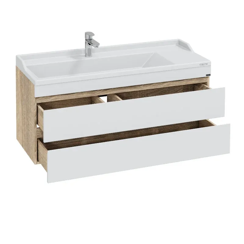 Подвесная тумба Санта Марс 120 светлая под раковину Sirius 120 с двумя ящиками — это не только стильный, но и функциональный элемент для вашей ванной комнаты. Изготовленная из высококачественного ЛДСП, она прослужит долго, не теряя своей привлекательности. Фасады тумбы покрыты глянцевой эмалью, что придает им свежий и современный вид. Два ящика, снабженные доводчиками, обеспечат комфортное использование и удобное хранение.