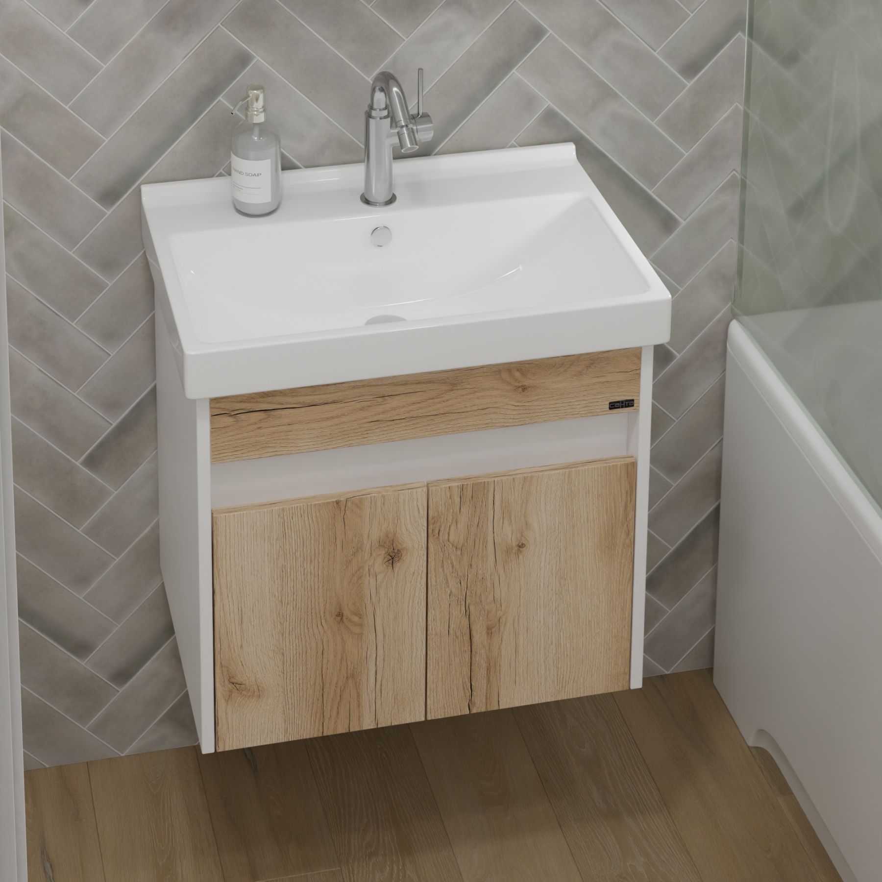 Подвесная тумба под раковину Санта Мира 700477 60 см дуб австрийский/белый