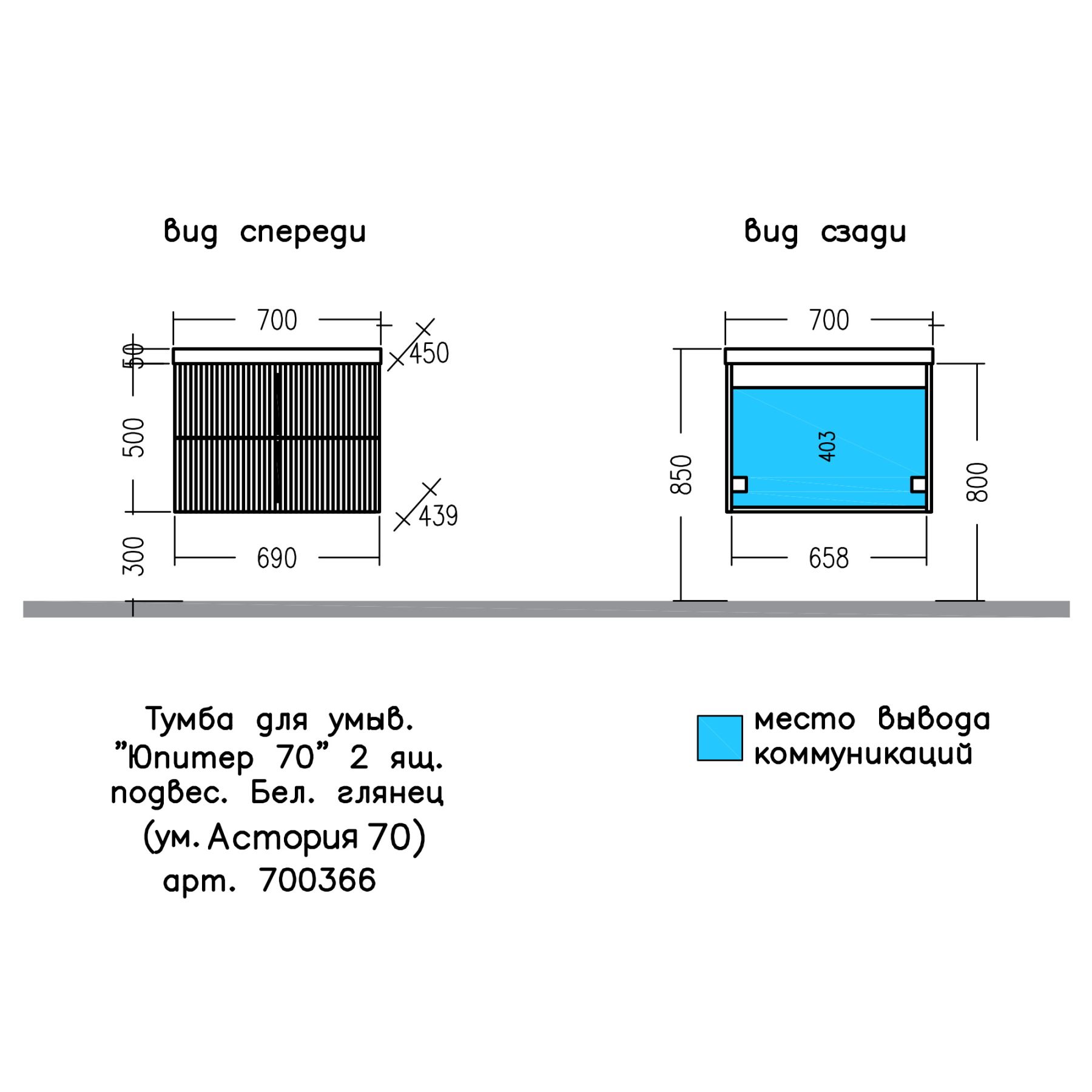 Подвесная тумба под раковину Санта Юпитер 700366 70 см белый