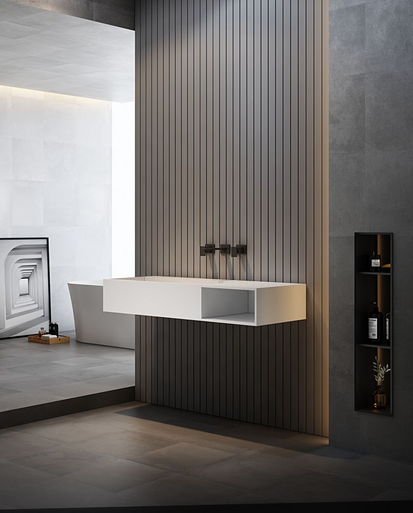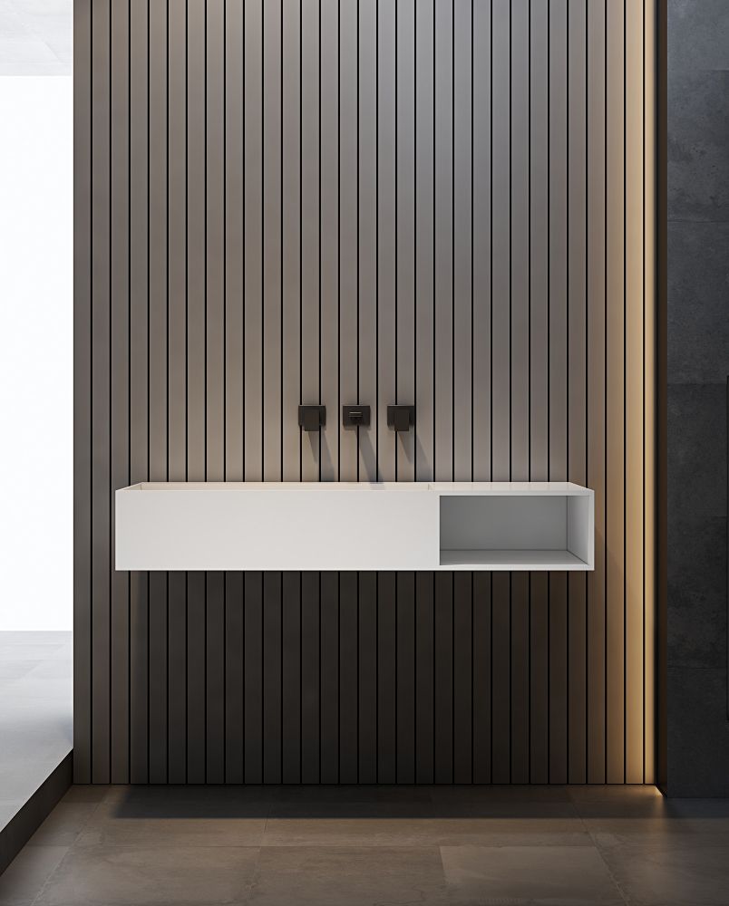 Подвесная тумба с раковиной ABBER Stein-1.0 R правая 100см белый матовый купить