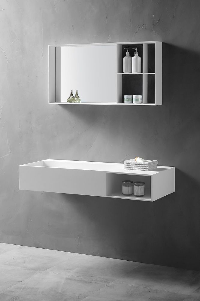 Подвесная тумба с раковиной ABBER Stein AS2640 100см белый матовый купить