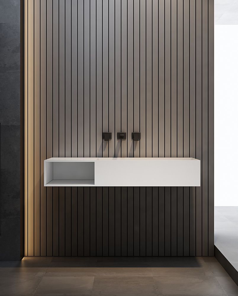 Подвесная тумба с раковиной ABBER Stein AS2640-1.2 L левая 120см белый матовый