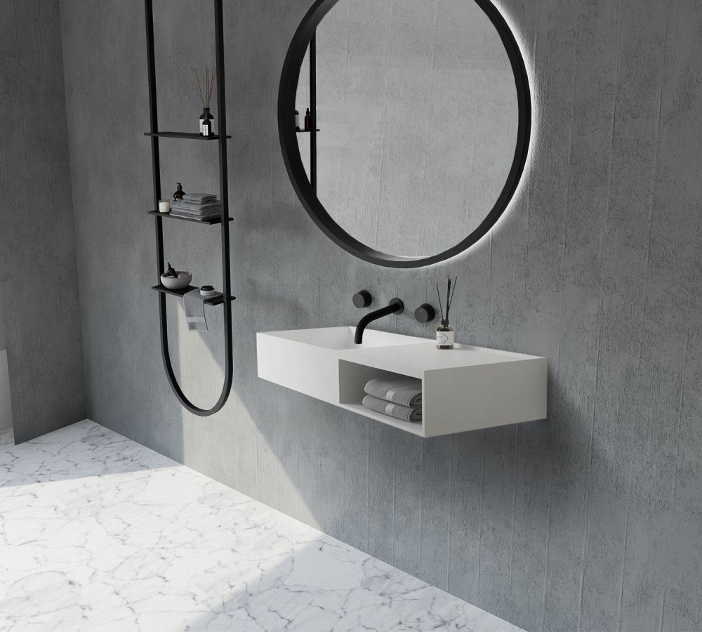 Подвесная тумба с раковиной ABBER Stein AS2649-0.8 80см белый матовый