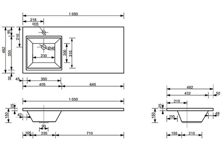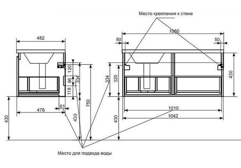 Подвесная тумба с раковиной Эстет Dallas Luxe ФР-00009678 Л 105см длинный ящик белый купить