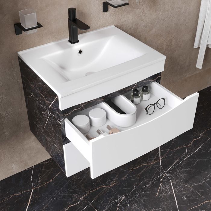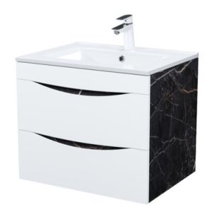 Подвесная тумба с раковиной IDDIS Cloud CLO60B0i95K 60см белый/чёрный мрамор
