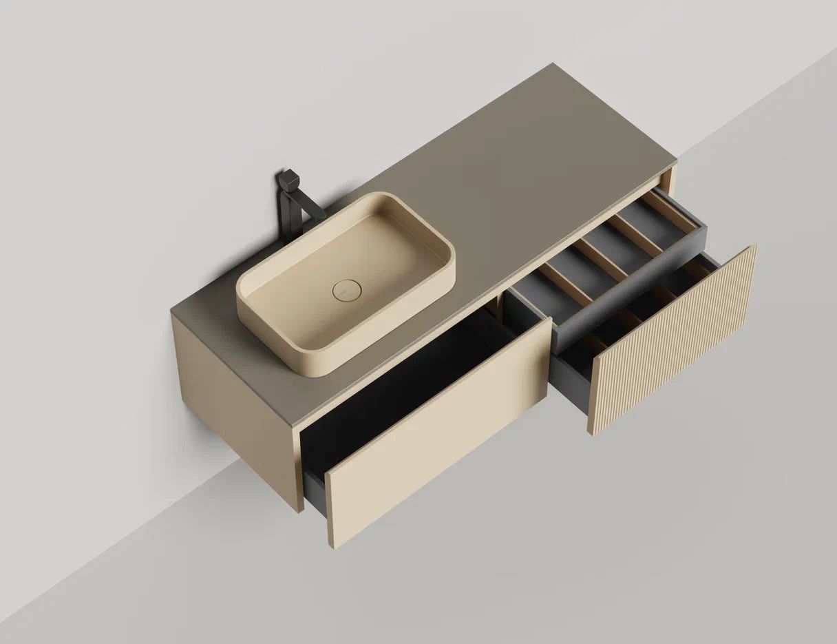 Наполнение для тумбы включает: блоки ячеек для тумб, коврики и комплект внутренней подсветки, которые помогут организовать пространство и создать более удобный доступ к вещам.Тумба DOMINO, дополненная столешницей COSTA из каменного литья S-Stone, гарантирует практичность и простоту ухода.