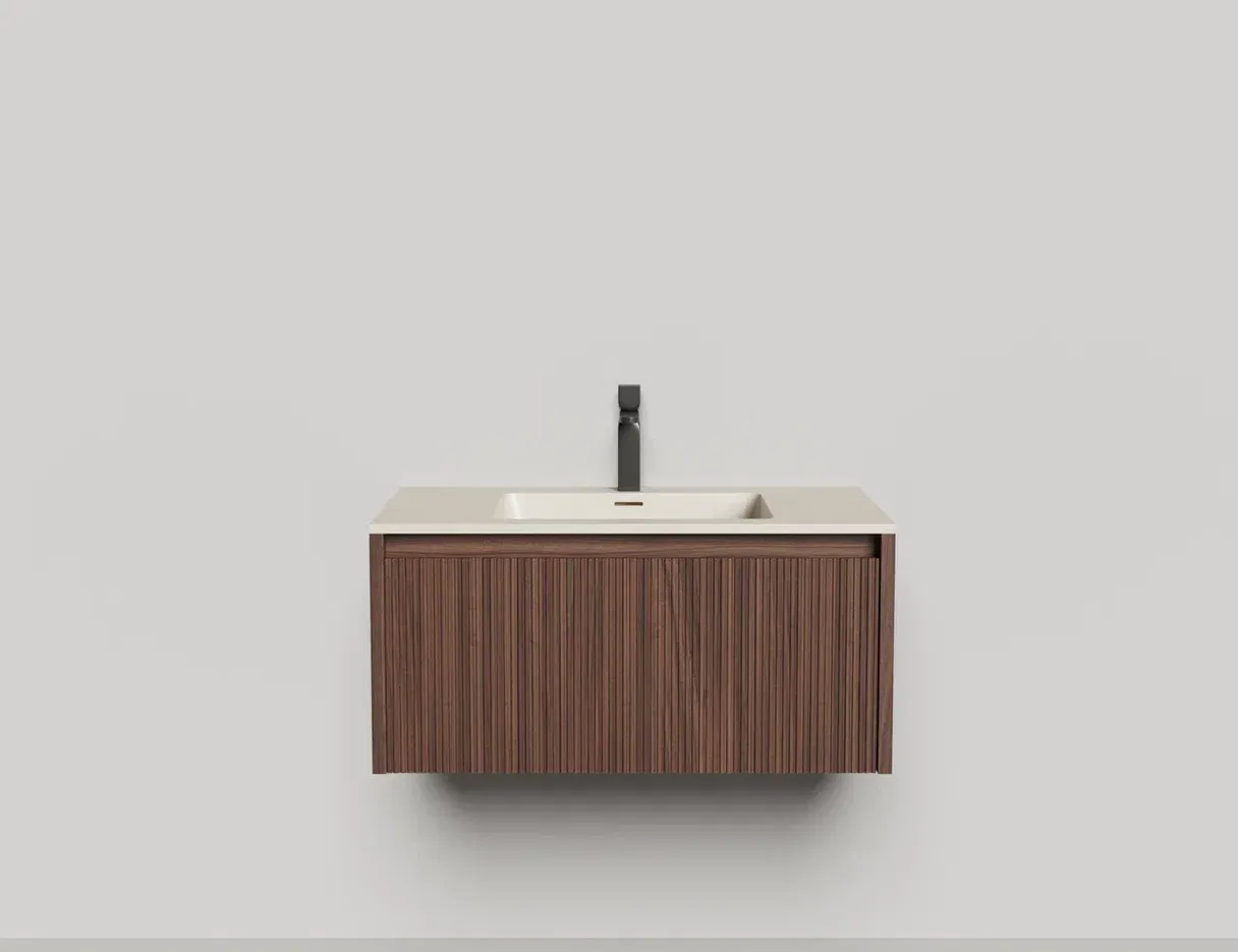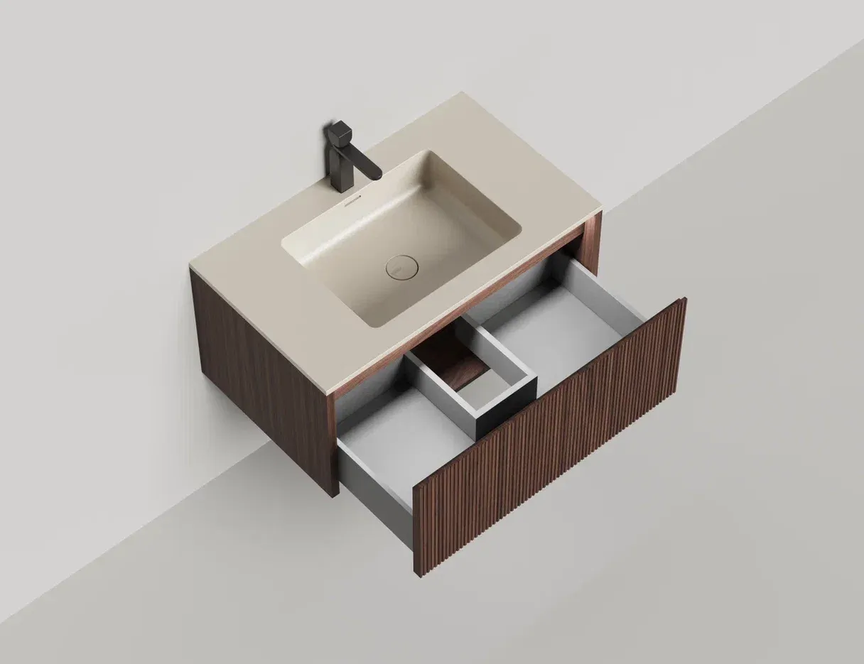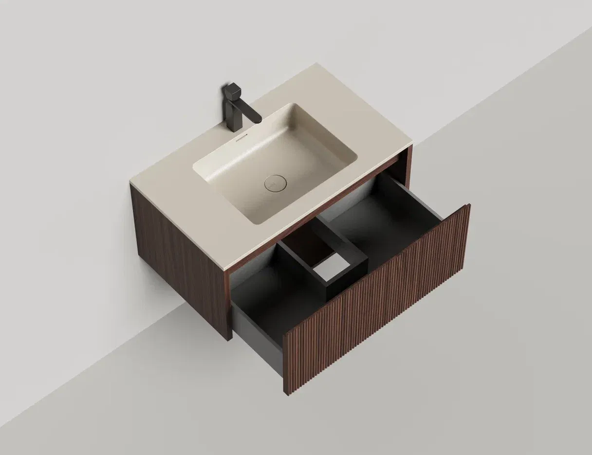Подвесная тумба Salini Domino 27D208INF 80см шпон/фрезерованный фасад под встраиваемую раковину