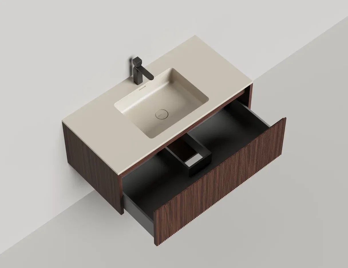 Подвесная тумба Salini Domino 27D210INF 100см шпон/фрезерованный фасад под встраиваемую раковину