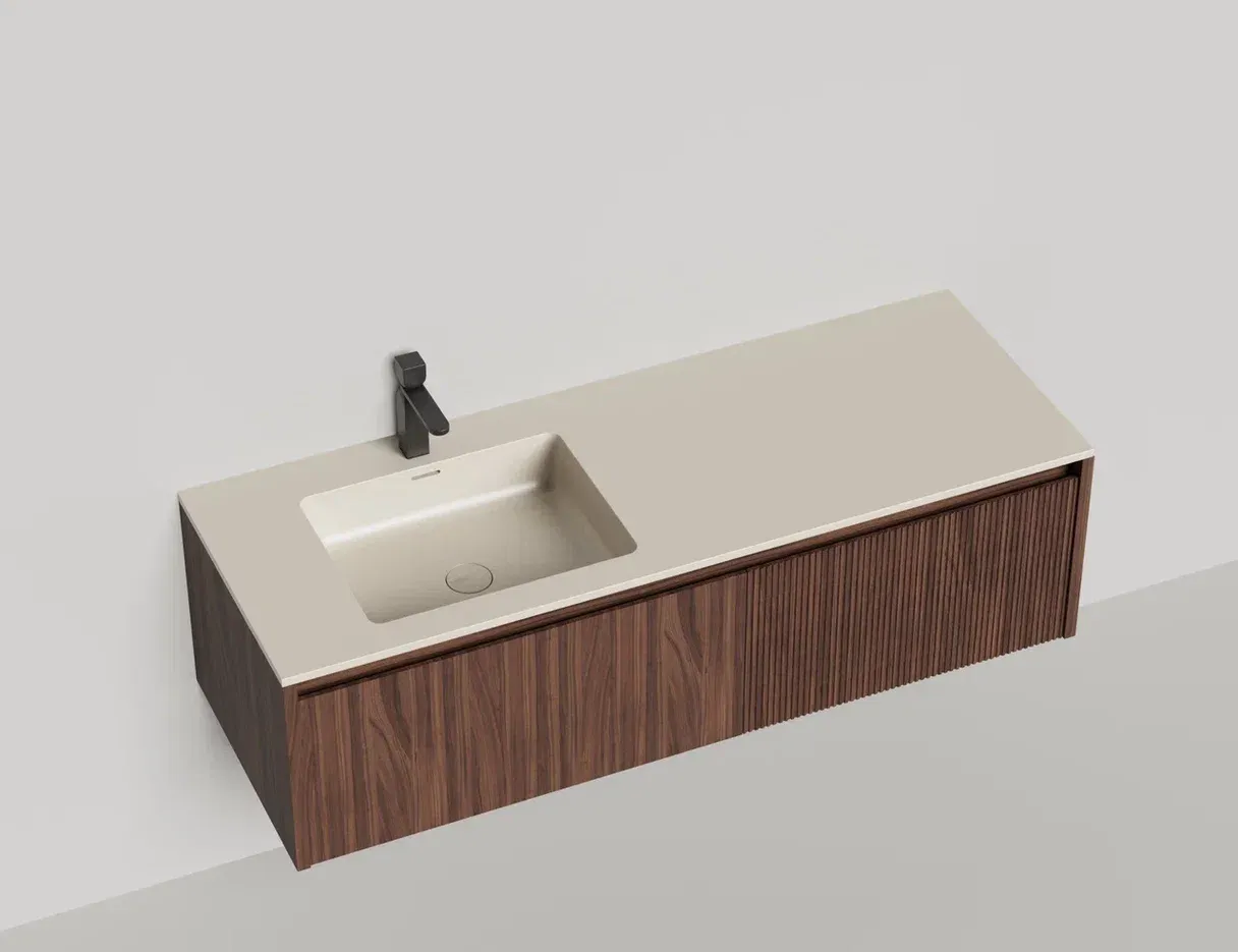 Наполнение для тумбы включает: блоки ячеек для тумб, коврики и комплект внутренней подсветки, которые помогут организовать пространство и создать более удобный доступ к вещам.Тумба DOMINO, дополненная столешницей COSTA из каменного литья S-Stone, гарантирует практичность и простоту ухода.