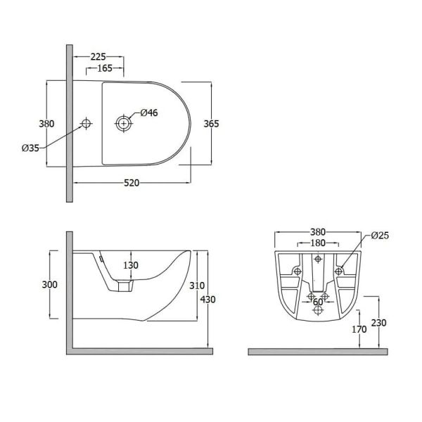 Подвесное биде Размер: 520 x 380 х 300 С отверстием под смеситель С отверстием перелива С к... Подробнее