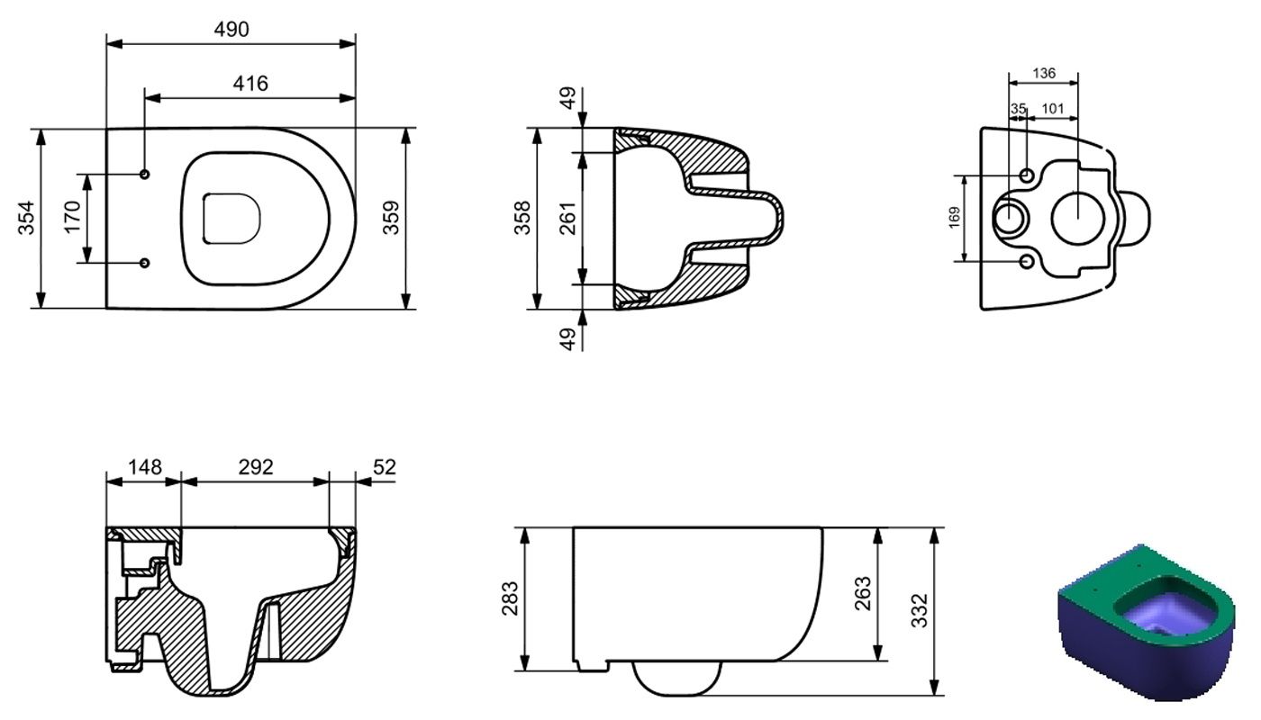 Подвесной унитаз Allen Brau Priority 2 36x49 см, безободковый, белый, 4.31002.20Основные характеристики:Унитаз подвесной