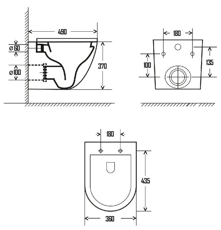 Подвод воды:определяется системой инсталляции
