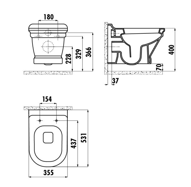 Подвесной унитаз коллекции Creavit Antik изготовлен из экологичного высокопрочного материала - санфарфора.
